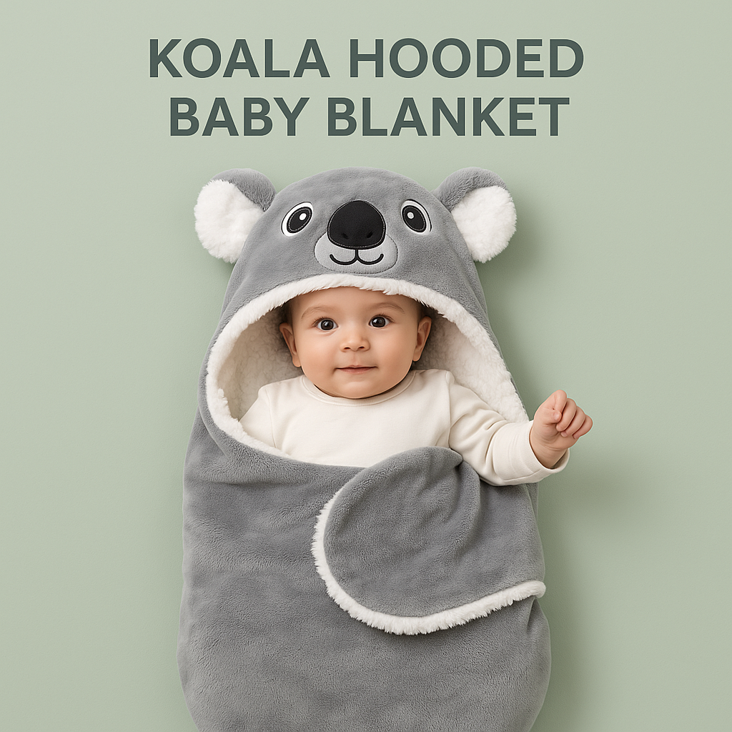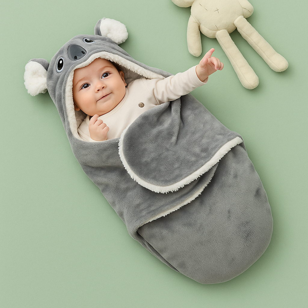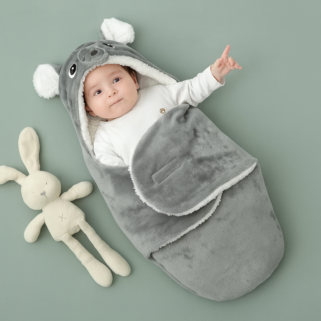 Newborn Baby Hooded Swaddle Blanket – Soft Velvet, Cartoon Animal Design, Warm Wrap for Fall & Winter